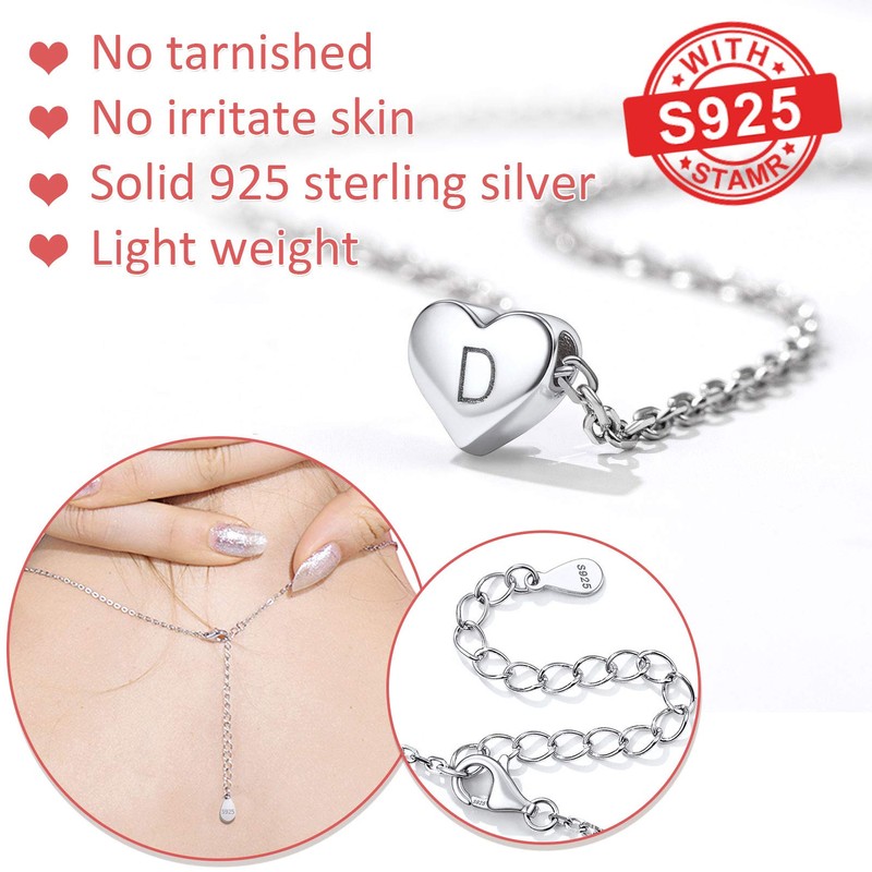 PROSILVER Heart Necklace Letter D Heart Necklace Adjustable Chain Mom Womens Sterling Silver Initial Necklace