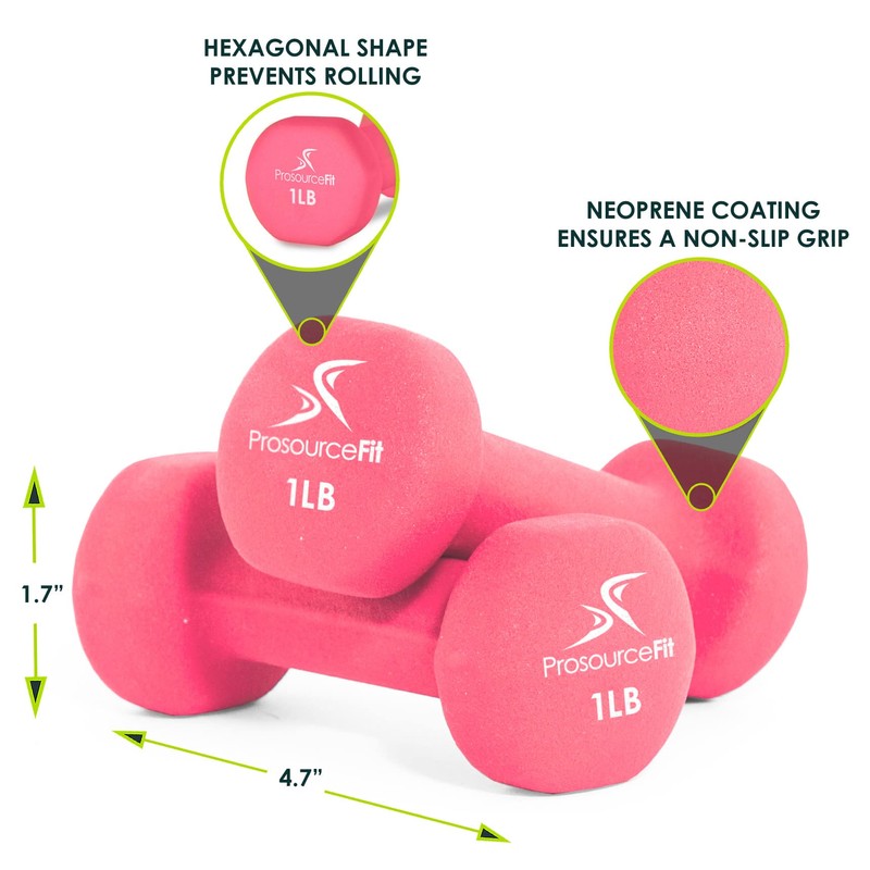 ProsourceFit Neoprene Dumbbell Coated for Non-Slip Grip, 1 lb