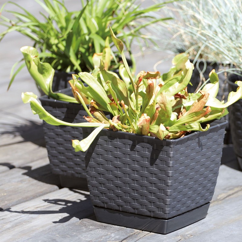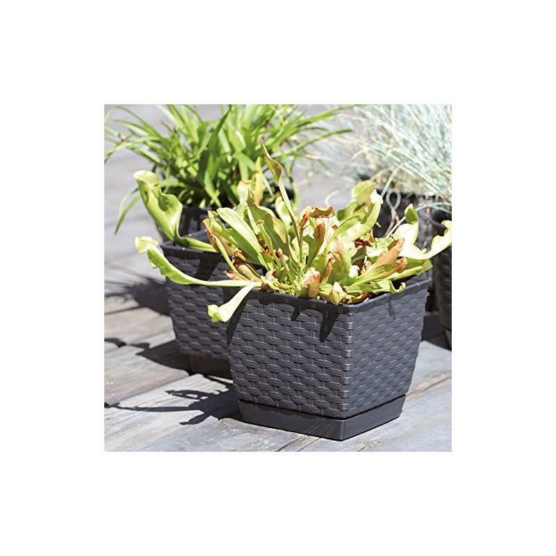 Prosper Plast DRLK165-S433 16.5 x 16.5 x 14.2 cm "Ratolla" Square Flowerpot - Anthracite