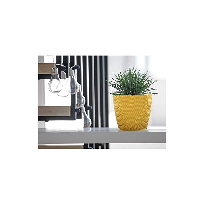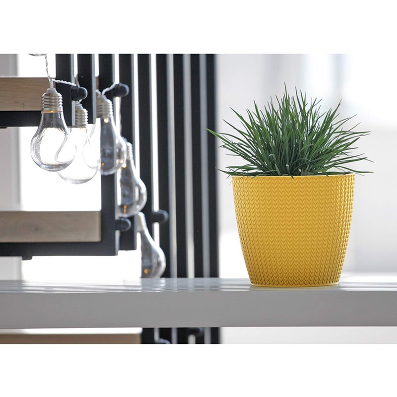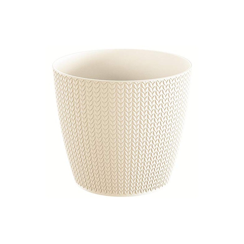 Prosperplast Wheaty Flowerpot Planter Elegant Garden UV-Resistant Braid Pattern Plastic 128mm Capacity 1.0L (Creamy)
