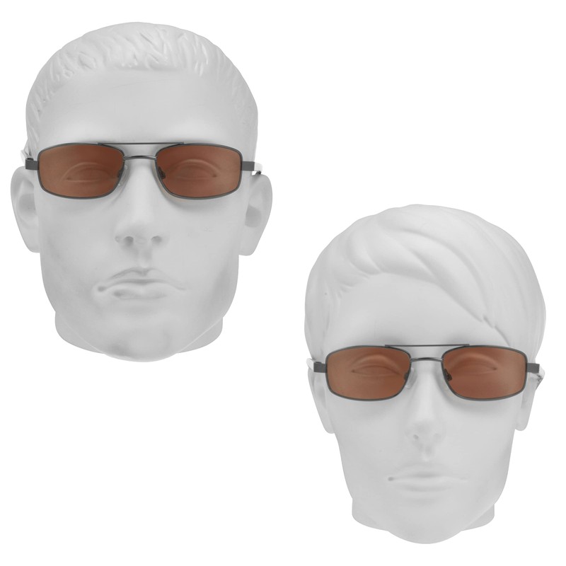 Liverpool's classic square aviator style reading sunglasses have a full metal frame with a full magnified lenses. The flexible spring hinges help maintain the original shape for a comfortable fit every time you wear them. These tinted reading sun glasses feature impact resistant Polycarbonate lenses that provide 100% protection from the sun's UV rays, making it perfect for reading in outdoor or sunny areas. Liverpool sun readers are available in black/gunmetal frame with smoke lenses or tortoise/bronze frame with brown lenses, in the following powers:+1.00 +1.25, +1.50, +1.75, +2.00, +2.25, +2.50, +2.75, +3.00, +3.25.+3.50 and +4.00. Liverpool HD sun readers are available in gunmetal frame with HD lenses or Bronze frame with HD lens, in the following powers: +1.50, +2.00, +2.50, +3.00, +3.50. WHOLE Lens is READERS. This style is NOT bifocal. Fits small to Large head sizes.