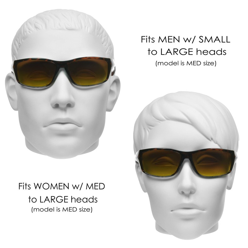 These bifocal sunglasses are available in only ONE size,but may fit men and women differently. For MEN, these will fit Small to Large head sizes. For WOMEN, these will fit Medium to Large head sizes. So, these glasses will fit women slightly larger.