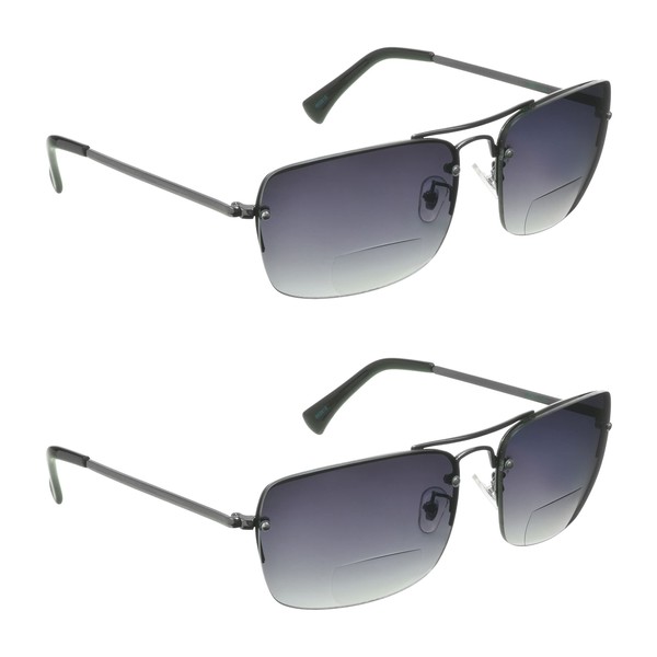 proSPORT Bifocal Sunglass Reader for Men Women Square Aviator Pack of 2 Pairs +3.25 Tinted Gradient Smoke Lens Gunmetal Frames