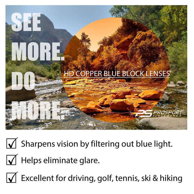 - EXPERIENCE BLUE BLOCKING HIGH DEFINITION: Increase Clarity. Increase Contrast. See Farther. HD (High Definition) lenses filter out blue light in the UV spectrum which cause haziness; leaving a clearer and crisper view. Perfect for Driving, Golf, Cycling, Running, Fishing, Tennis, Baseball, Watching the Sunset or Lounging by the Pool.