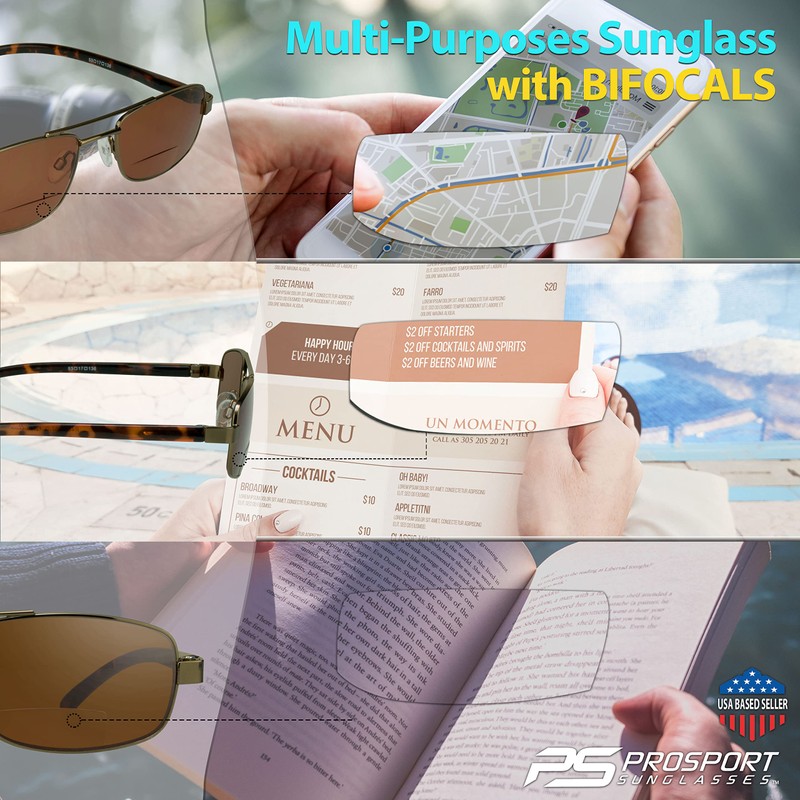 proSPORT Square Aviator +2.50 Bifocal Sunglasses Gunmetal Frame with Highl Definition HD Blue Light Blocking Lenses.