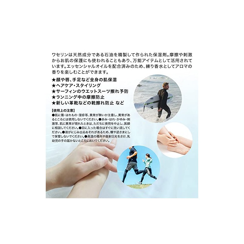 - Vaseline is a moisturizing agent made from refining petroleum, a natural ingredient. It is also used to protect your skin from friction and irritation, making it a versatile item. With essential oils, you can enjoy the aromatic scent as kneaded perfume