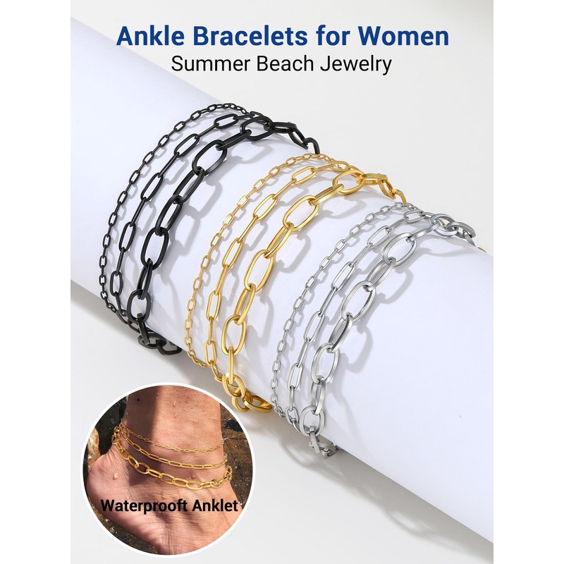 - Featuring an adjustable length of 8.5 to 10.5 inches (22 to 27 cm), the anklets sets(2mm 3mm and 6mm paperclip chain) fit most ankle sizes. The chains are smooth, lightweight, and designed for all-day comfort.