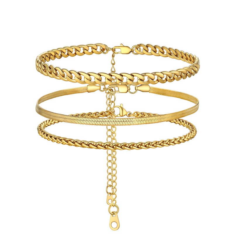 - 【Beautiful 3PCS Anklet Set】The anklet set includes snake chain anklet, wheat chain anklet and cuban link anklet.