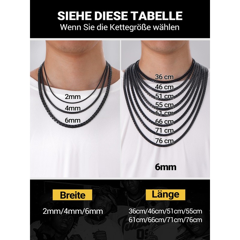 PROSTEEL Men's Necklace High Quality Stainless Steel Plate Venetian Chain Pea Chain 2 mm / 4 mm / 6 mm Wide Chain with Lobster Clasp for Men Boys Choice of Length 46-76 cm