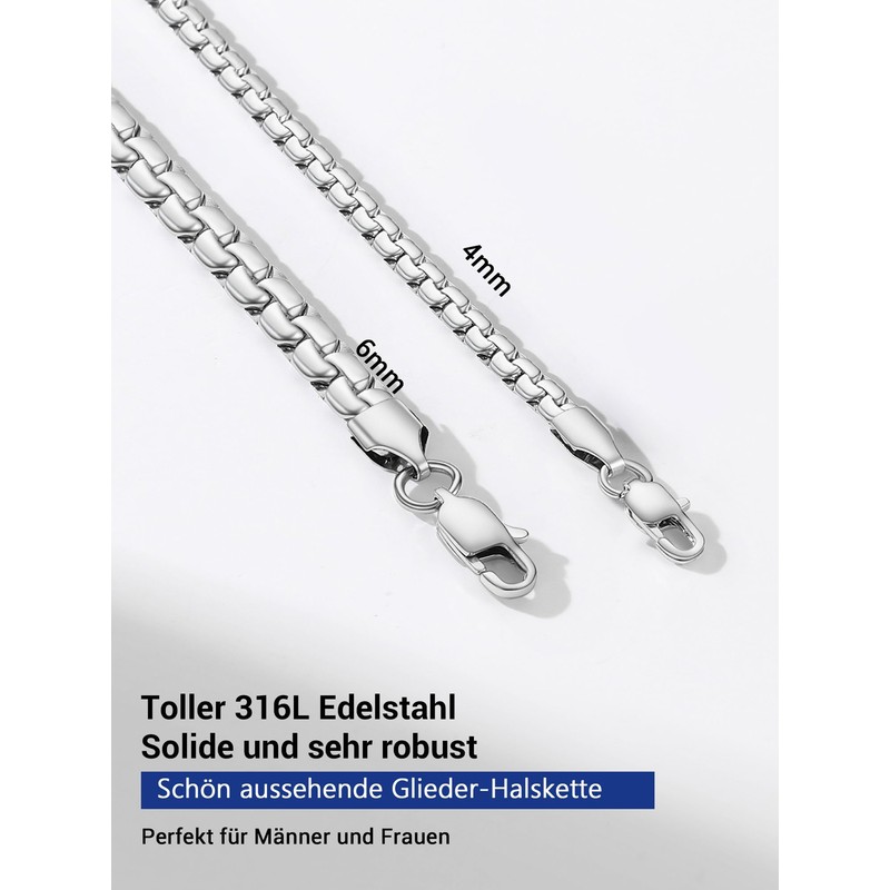 Prosteel Men's Venetian Chain with Lobster Clasp 4 mm / 6 mm Wide Chain with Lobster Clasp for Men and Boys, Length 46–76 cm Selectable, Stainless Steel