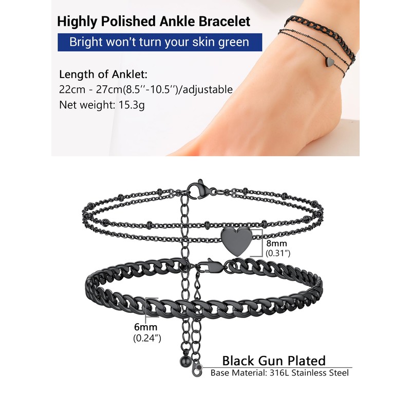 PROSTEEL Stainless Steel Anklets for Women Black Anklets Cuban Anklets Womens Heart Anklets Plus Size Anklet