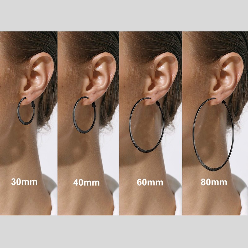 PROSTEEL Women's Flat Hoop Earrings 30 mm/40 mm/60 mm/80 mm Stainless Steel/18 K Gold-Plated Hoop Earrings Large Circle Hoop Earrings Accessory for Women Girls, Stainless Steel, No Gemstone