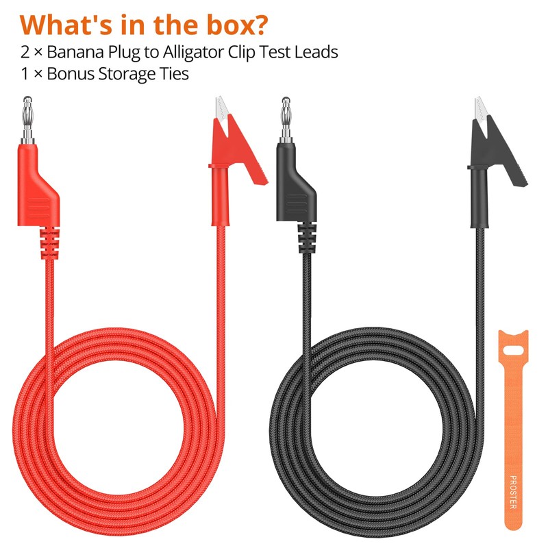Proster Multimeter Test Leads Set 2PCS - 20A/1000V 4mm Banana Plug to Crocodile Clip Leads 1.2m/3.93ft Safety Cables Insulated Copper Conductors for Multimeters, Power Supplies & Electrical Testing