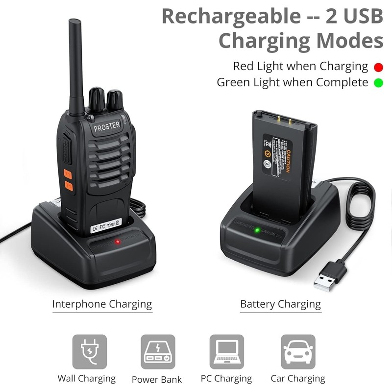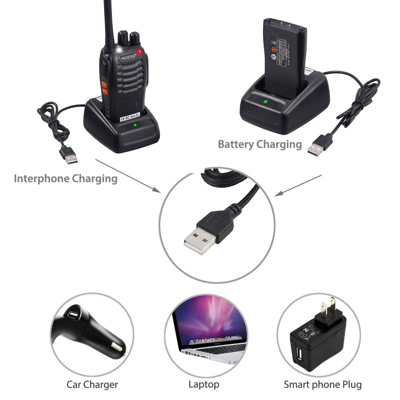 • WALKIE TALKIE WITH CONVENIENT USB CHARGING: Convenient charging even you are outside with car charger/power bank. Most of your USB Charger is suitable for this charging, you may use a PC charger, car charger, mobile phone charger to charge it