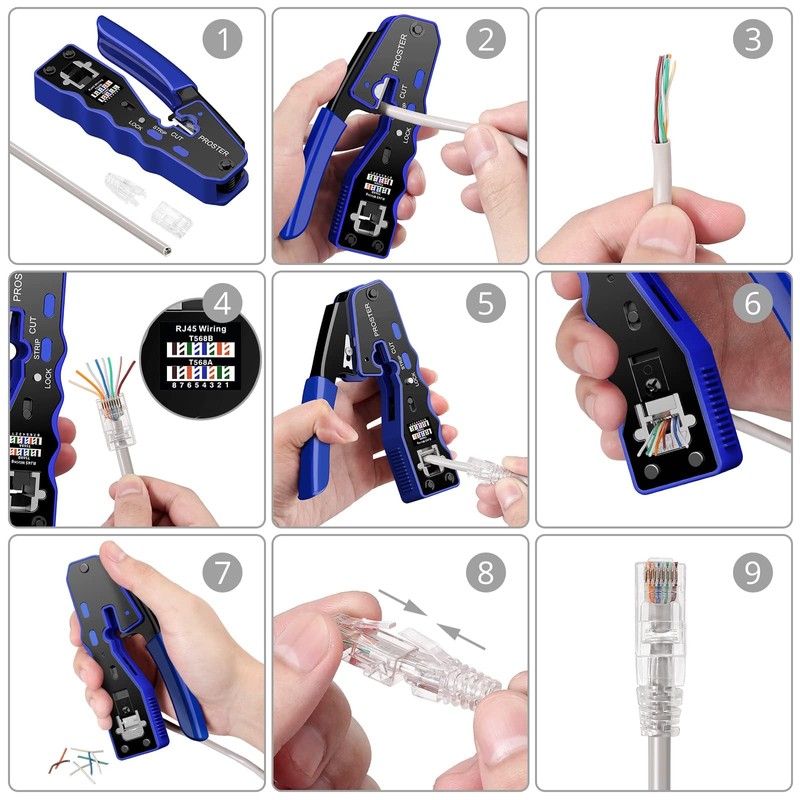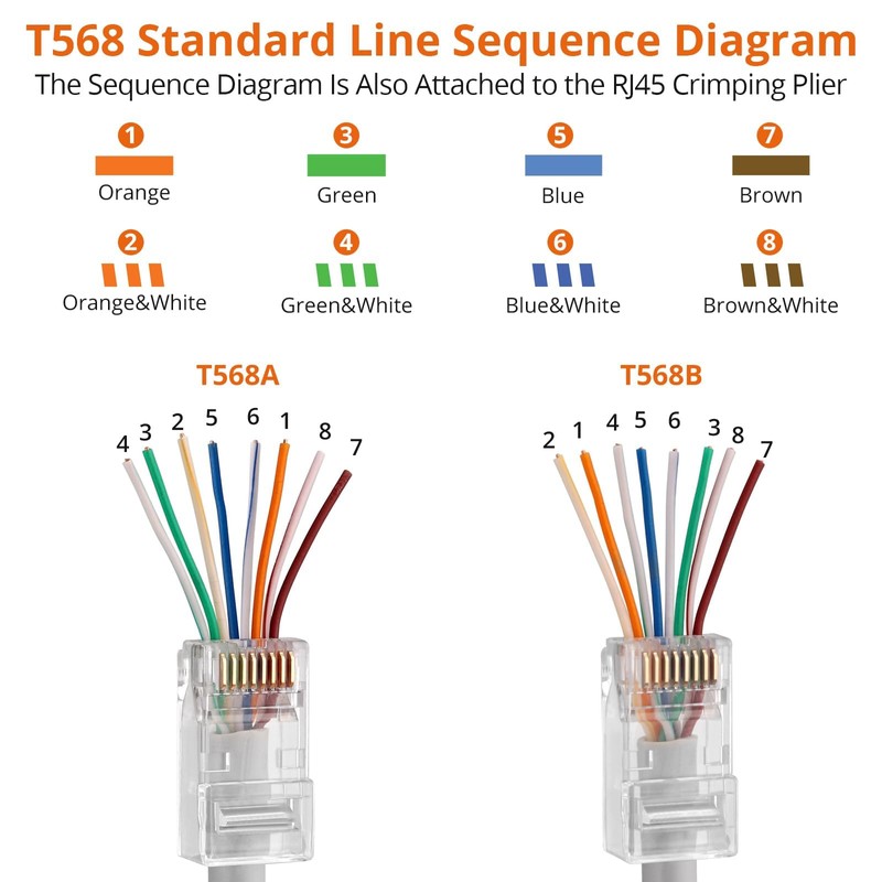 - 【Lock Button】A Lock Button on the RJ45 Crimper Can Be Opened At Any Time or Locked to Save the Space and Ensure Safe Use. Added T-568A and T-568B Two Kinds of RJ45 Crimping Sequence Color Stickers For Easy Use.