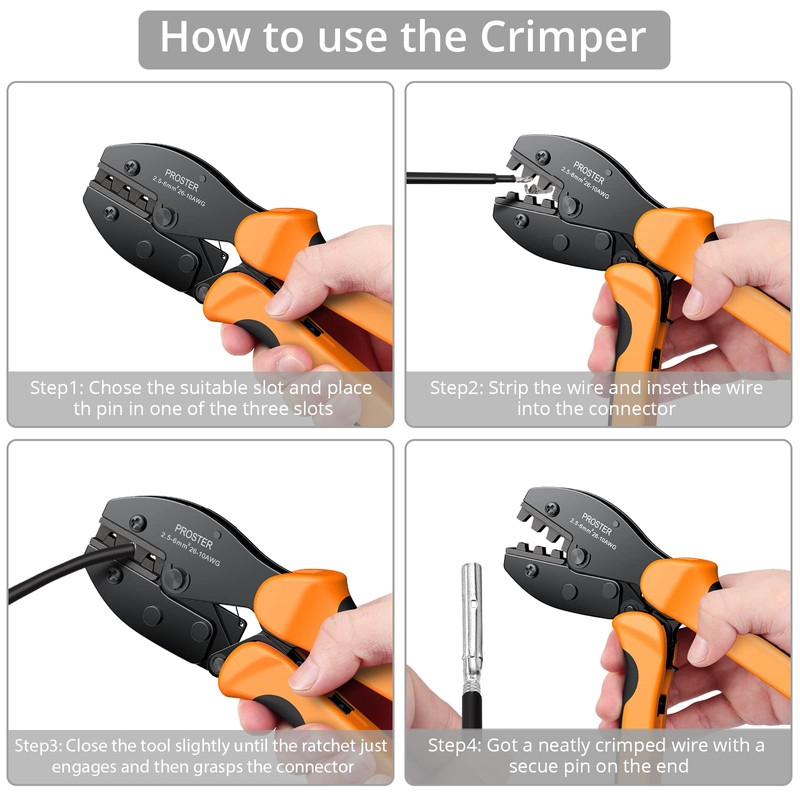 Proster Solar Crimping Pliers PV Crimper 26-10 AWG Ratchet Connection for 2.5-6 mm² Solar Connector Solar Panel PV Cable Orange