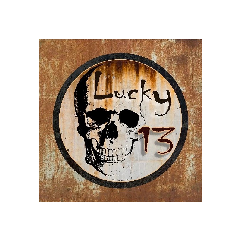 ProSticker 304 (One) 4" Lucky 13 Skull Skeleton Rat Rod Gasser Rusty Decal