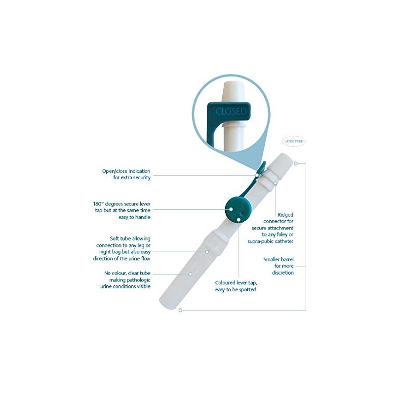 • Connect to any urethral and supra-pubic catheter Ensure security