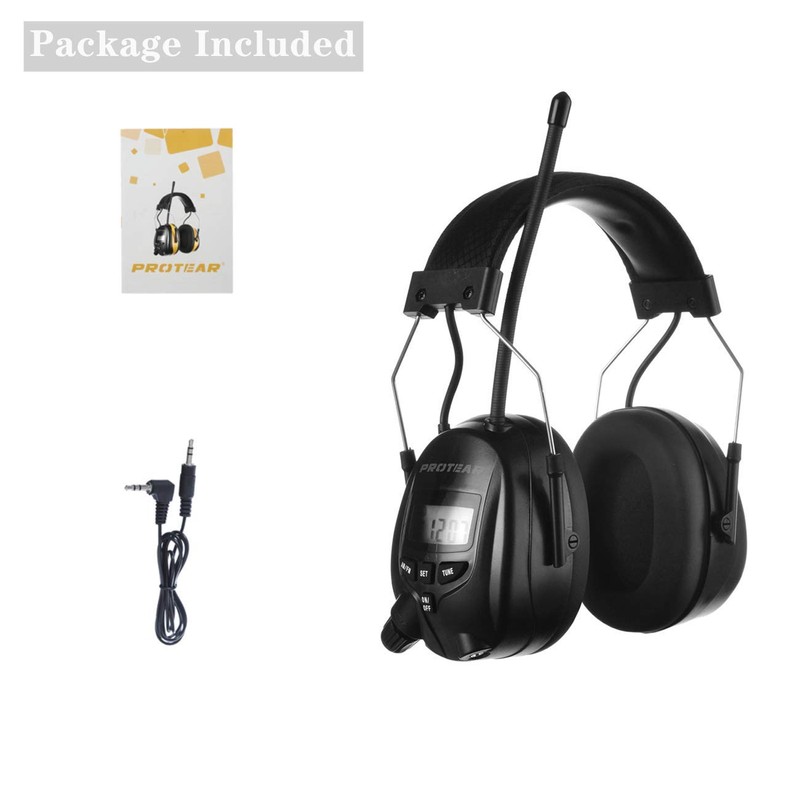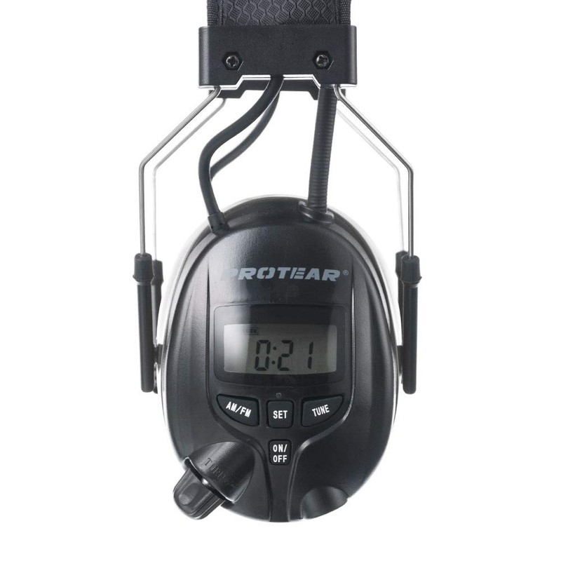 PROTEAR AM FM Hearing Protector, Ear Protection for Mowing, Snowblowing, Construction, Work Shops, 25dB NRR (Black)