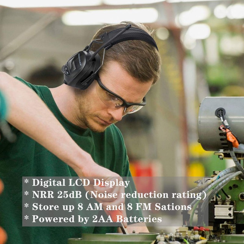 - ๐ง ๐๐๐๐ข๐จ ๐๐ง๐ ๐๐ซ๐๐ฌ๐๐ญ - โDigital AM/FM Radio tuning with easy-to-see & easy-to-use LCD display; โGreat radio reception allows you to seek and scan stations easily. โFunctions of preset and memory up to 8 AM and 8 FM stations for quick access to your favorite programs. โYou could adjust volume by switching the volume control knob. And you also could adjust volume by the audio device when you connect the earmuff to them by MP3 cord (Included).