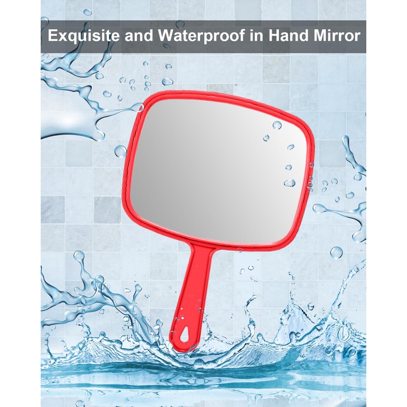 PROTECLE Large Hand Mirror, Salon Barber Hairdressing Handheld Mirror with Handle (Square Red 10.3"x7.4")