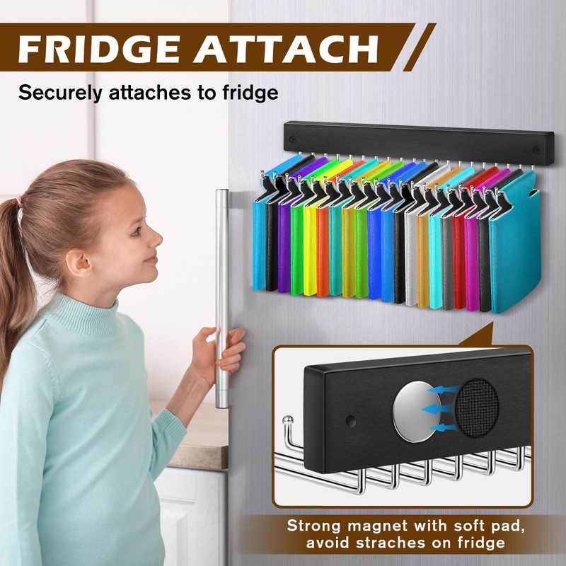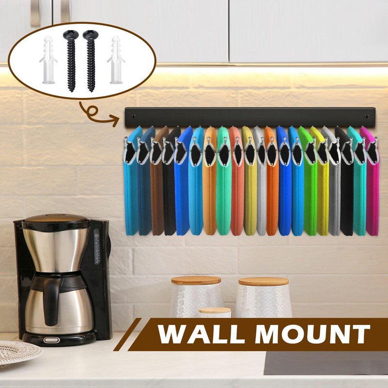 • Can Cooler Sleeves Holder: Keep your thermocoolers sleeves organized with this 20 hooks rack. Tame the chaos of loose can coolers and elevate your space with this multi-functional fridge/wall-mounted organizer.
