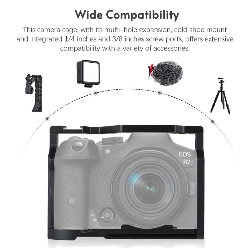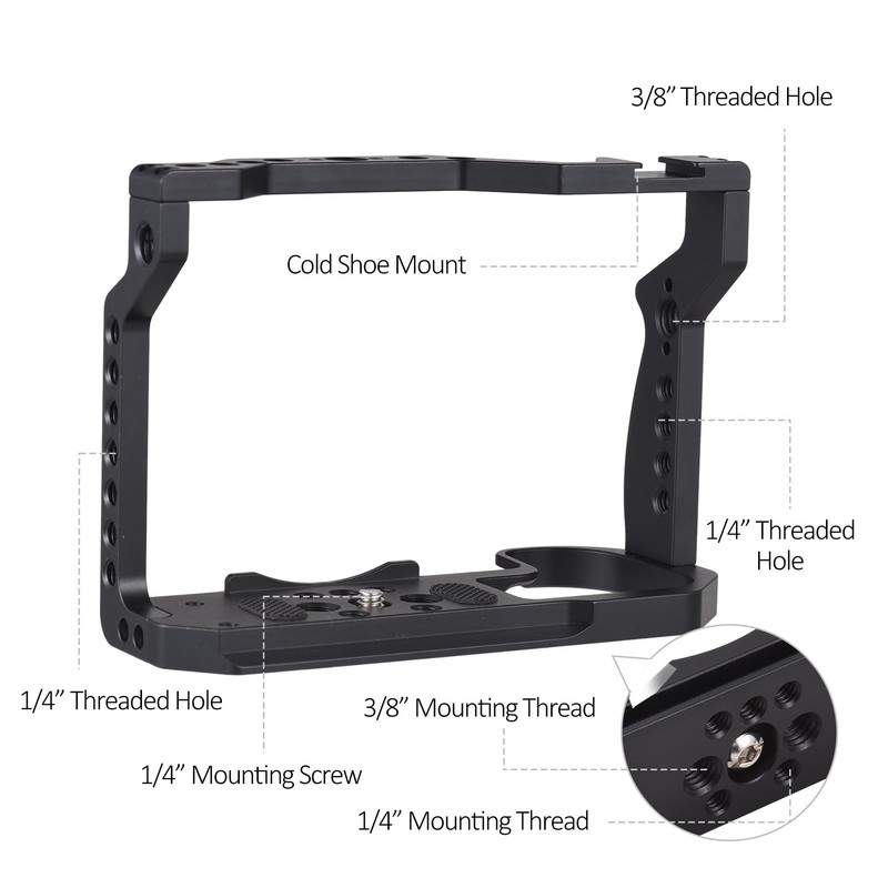 • 【Broad Compatibility】This camera cage, with its multi-hole expansion and integrated 1/4 inches and 3/8 inches screw ports, offers extensive compatibility with a variety of accessories.