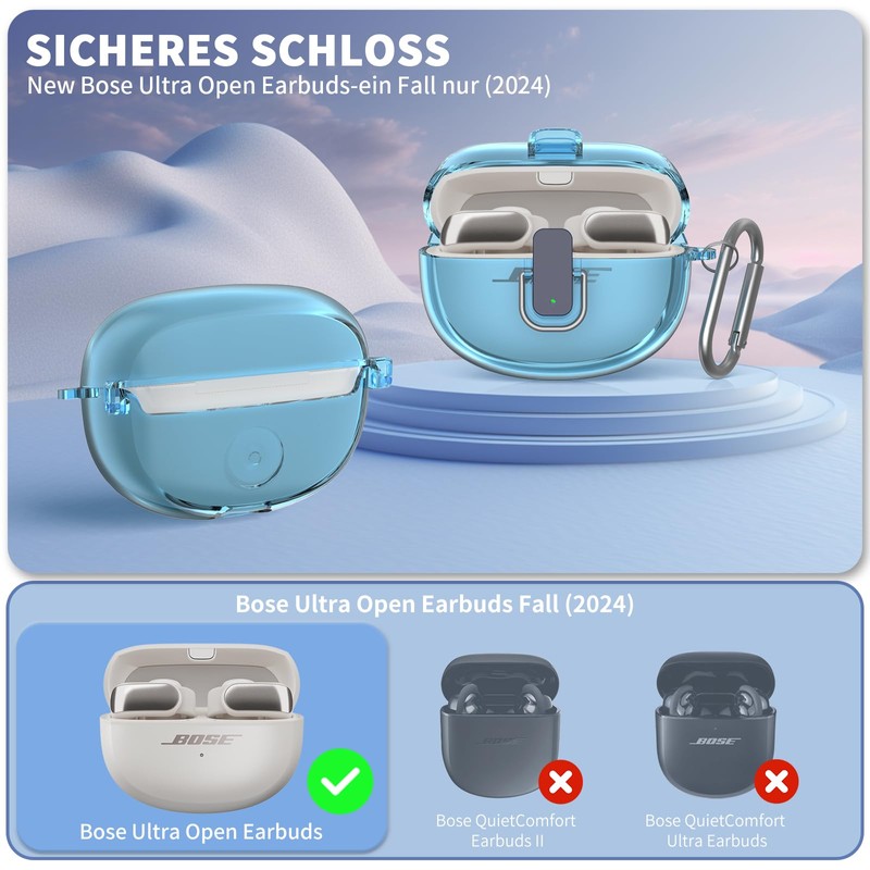 - Compatible models: this case with safety lock is compatible with Bose Ultra Open, all-round closed closure construction for a perfect fit. The stylish transparent case design is even more eye-catching.