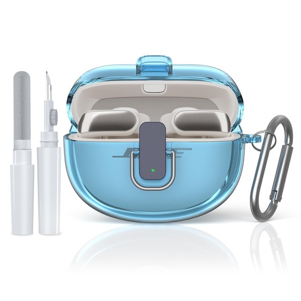 Protective Case for Bose Ultra Open Earbuds, MOWYEOK Transparent TPU Safety Lock Housing, Applicable to Bose Ultra Open Case Accessories, with Carabiner and Cleaning Pen (Blue)