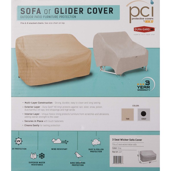 Protective Covers Weatherproof 3 Seat Wicker/Rattan Sofa Cover, X Large, Gray - 1124