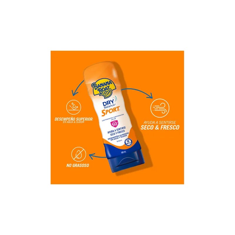 Banana Boat Dry Balance Sport en loción, es un protector solar ideal para las actividades al aire libre, te ayuda a sentirte seco y fresco, mientras te protege de los rayos del sol.