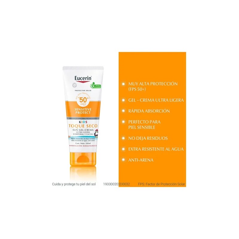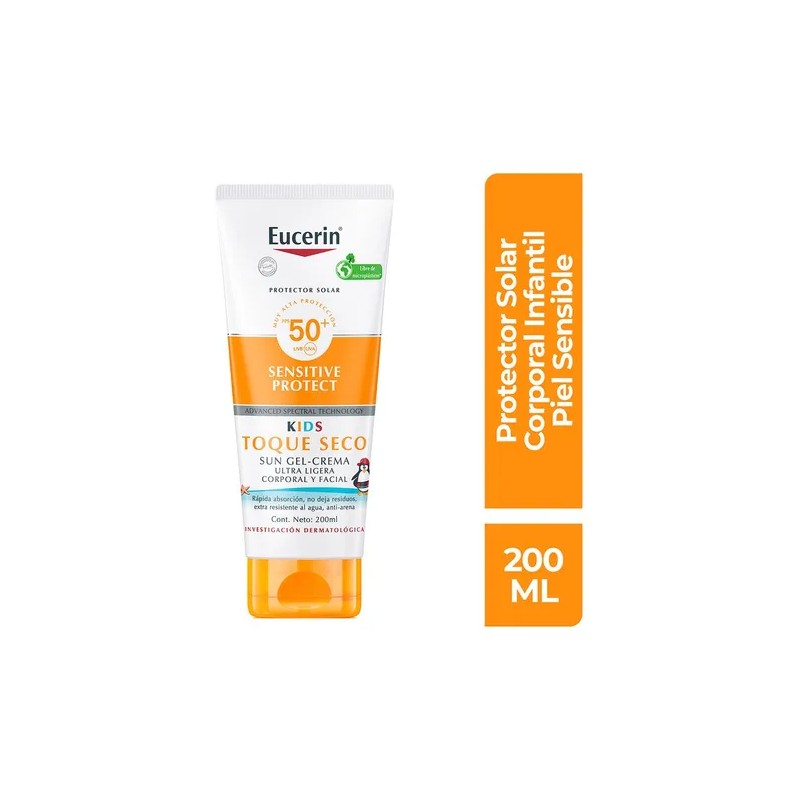 Protector Solar Eucerin Sun Kids Toque Seco Gel Crema 200ml