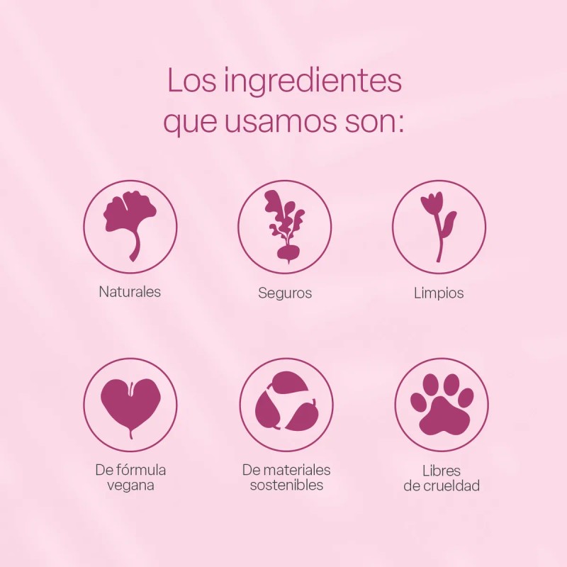C13-16 Isoalcano, Óxido de Zinc NO NANO, Dióxido de Titanio NO NANO, Cera de Girasol, Sorbitan Oleato, Triglicérido caprílico cáprico, coco caprilato, escualeno vegetal, aceite de jojoba, Heptyl Undecylenate, Capryloyl Glycerin / Sebacic Acid Copolymer, vitamina E, Ácido esteárico, Octyldodecanol, Aceite de canola, Extracto de romero, Aceite esencial de romero, Hidróxido de magnesio, Hidróxido de aluminio, Óxidos de Hierro.
