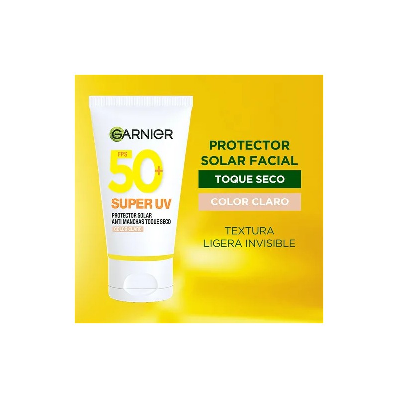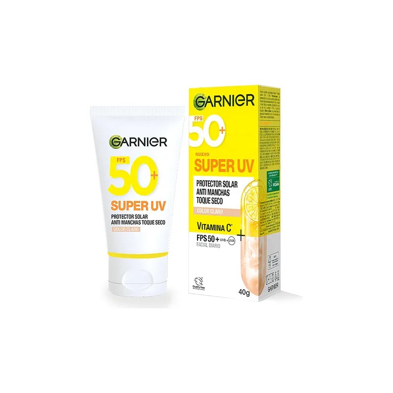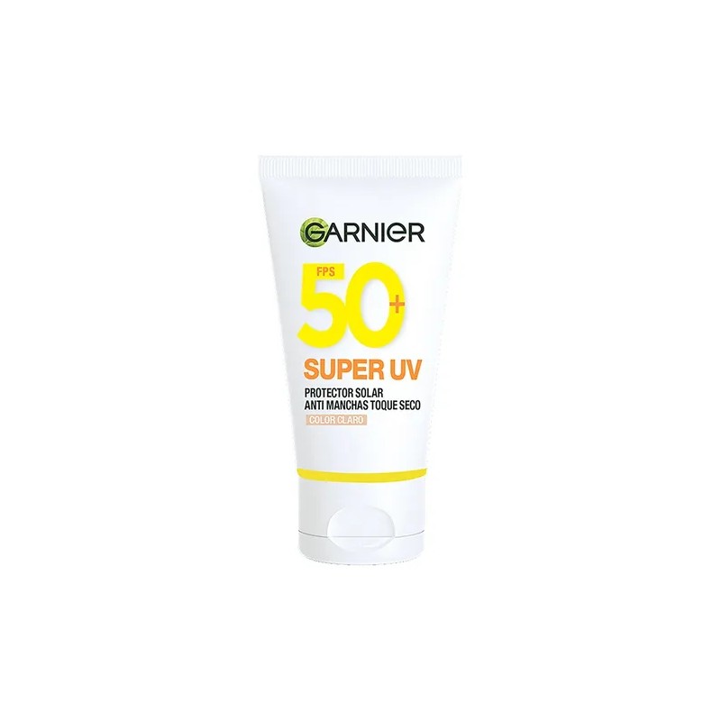 Con la gama de Garnier Super UV, ayuda a prevenir quemaduras solares. Potenciado con activos FPS 50+, Vitamina C y pigmentos minerales que iluminan y reducen manchas oscuras y uniformizan al instante.