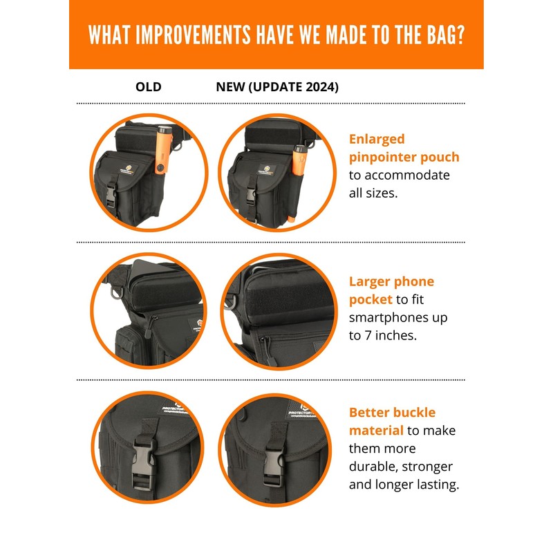 ProtectorTech HD Drop Pouch for Metal Detector Finds Bag with pinpointer holster - Metal Detecting Accessories