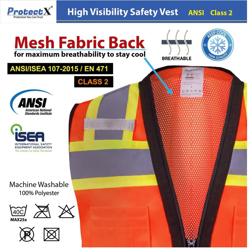 ●Certification: fully compliant with ANSI/ISEA 107 Class 2 standards