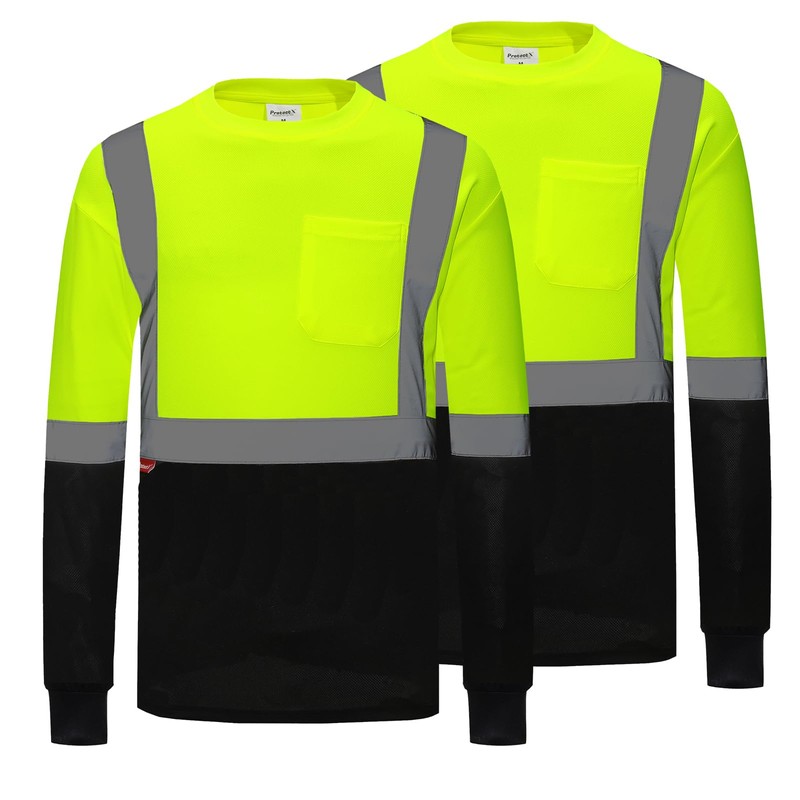 ProtectX High Visibility Shirts Long Sleeve Reflective Hi Vis Safety Shirts for Men Class 2 Work Shirts for Construction Warehouse 2 Pack Green Long Medium
