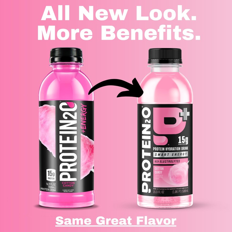 Protein2o 15g Whey Protein Isolate Hydration Drink Plus Energy & Focus, 350mg of Electrolytes, Vitamins B5 & B6, Sugar Free, Cotton Candy, 16.9 oz Bottle (Pack of 12)