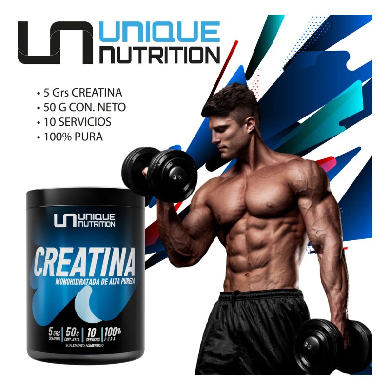 Nutre tu cuerpo con lo mejor y maximiza tu rendimiento con UNIQUE NUTRITION 100% Whey Protein y Creatina Monohidratada 100% Pura.