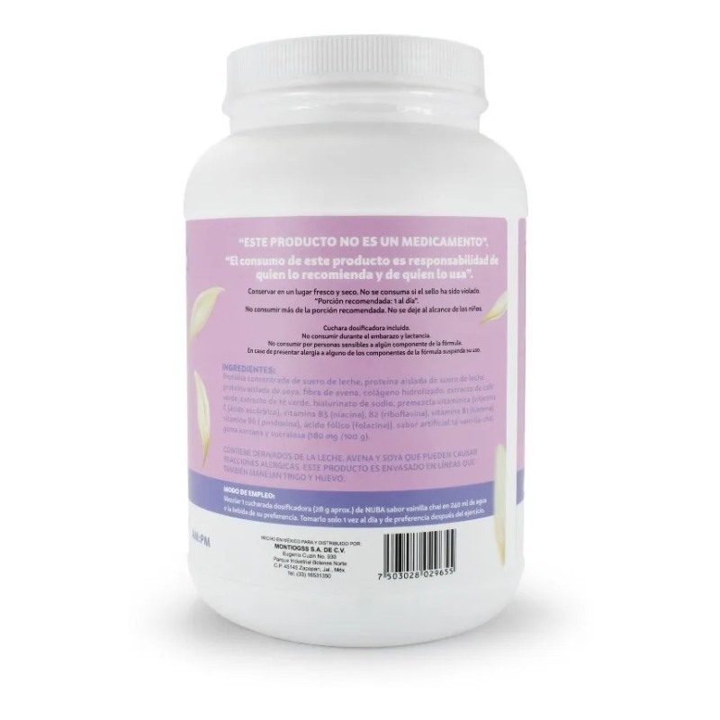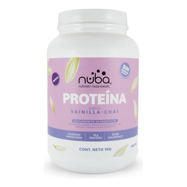 Proteina de Suero de Leche I Nuba I 1KG I 35 Servicios I 18g Por Servicio I Sabor Chai Vainilla I Adicionada con Colágeno y Ácido Hialuronico I Sin Azúcar