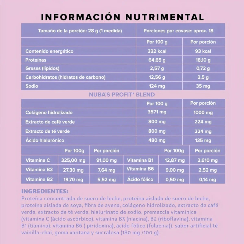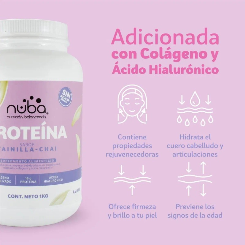 Proteina de Suero de Leche I Nuba I 1KG I 35 Servicios I 18g Por Servicio I Sabor Chai Vainilla I Adicionada con Colgeno y cido Hialuronico I Sin...