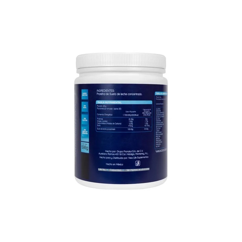 • Composición: 80% de proteína concentrada de suero de leche (WPC), sin saborizantes ni edulcorantes artificiales.