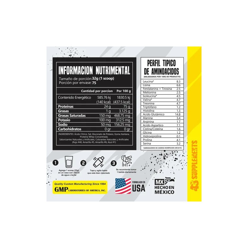 Descripción Limpia: La Proteína Hidrolizada 43 Whey Zero de 2.4 kg es un suplemento nutricional de alta calidad, especialmente diseñado para deportistas y personas activas. Este producto, de la reconocida marca 43 Supplements, se presenta en un práctico formato de polvo, fácil de mezclar y con un delicioso sabor a vainilla. Cada sachet contiene 75 porciones de 32 gramos, cada una con una concentración de suero de leche hidrolizado y aminoácidos como BCAA y glutamina, ideales para la recuperación muscular. A pesar de ser un derivado de la leche, este producto es libre de gluten y no contiene azúcar ni carbohidratos, lo que lo hace perfecto para dietas restrictivas. Sin embargo, contiene lactosa, por lo que no es apto para veganos o personas con intolerancia a este componente. Se recomienda su uso a partir de los 15 años de edad. Recuerda, este producto no es un medicamento, su uso es responsabilidad del consumidor.