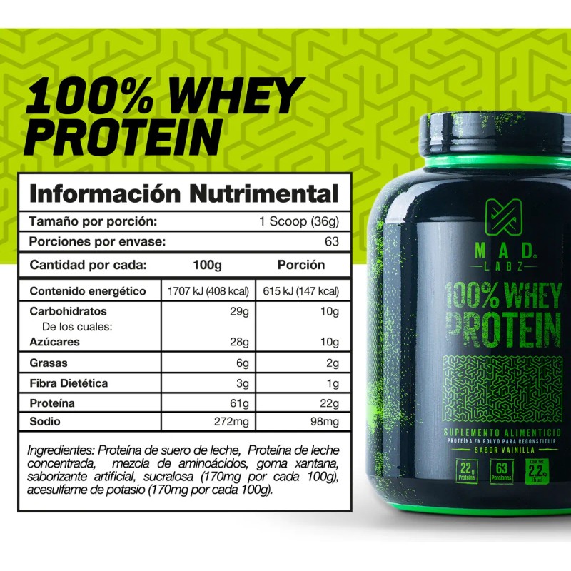 Beneficios Clave de la Proteína Mad Labz 100% Whey 2.26kg Sabor Vainilla
