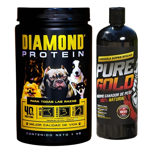 🐾 Combo Diamond Protein + Pure Gold – Suplemento proteico y multivitamínico para perros activos