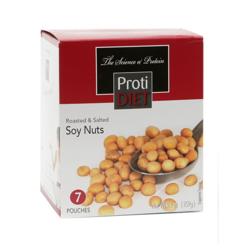 - This crunchy Roasted and Salty Soy Nuts from ProtiDiet is packed with 15 grams of soy protein and 8 grams of dietary fiber per serving