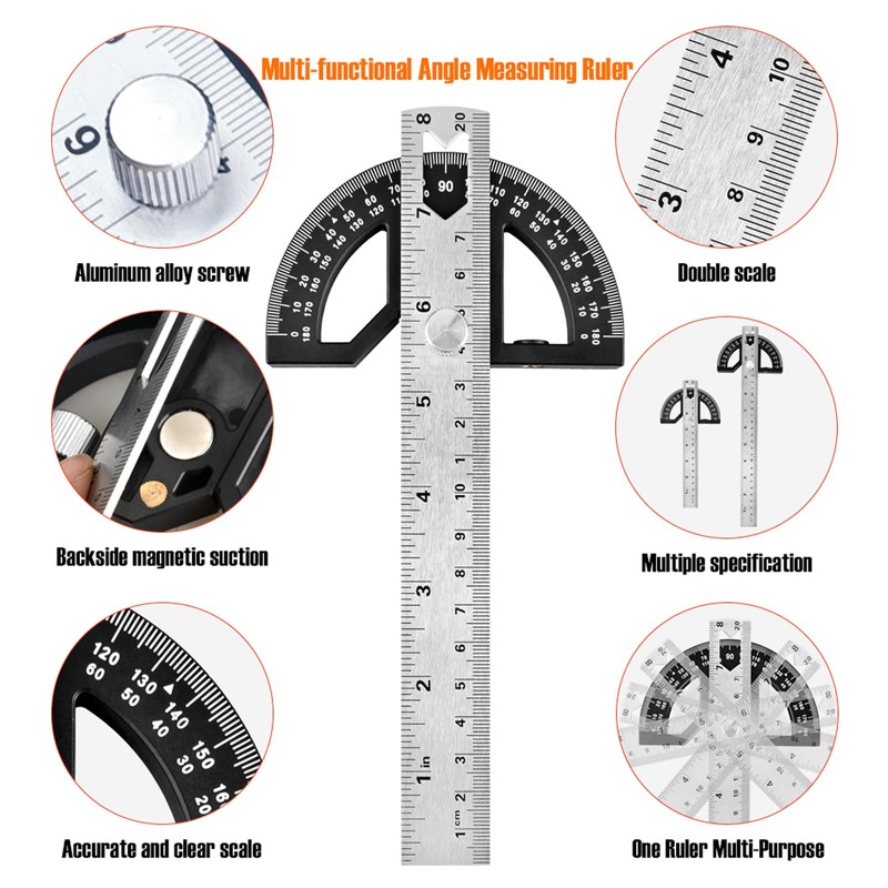 - Angle Ruler:Our construction protractor tool has both length and angle measurement function,with adjustable thumb nut,after tightening the nut,you can easily measure 0-180 degrees and read the angle number,the angle ruler for wood is clear and accurate,it can measure the length (0-20 cm/0-8 inches),it's a perfect for fathers,men and women who are working in carpentry,construction and engineering.