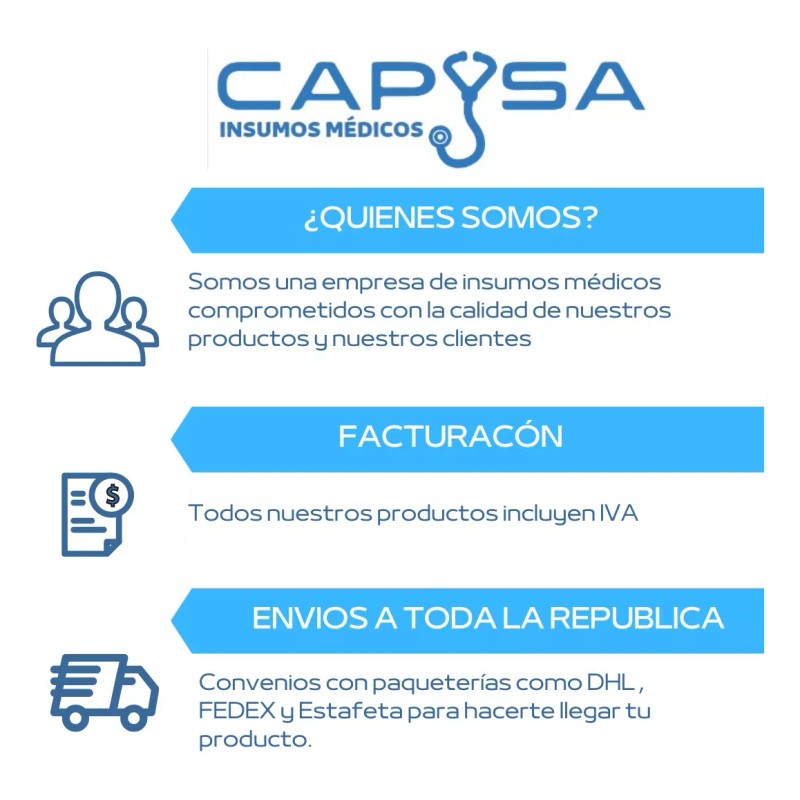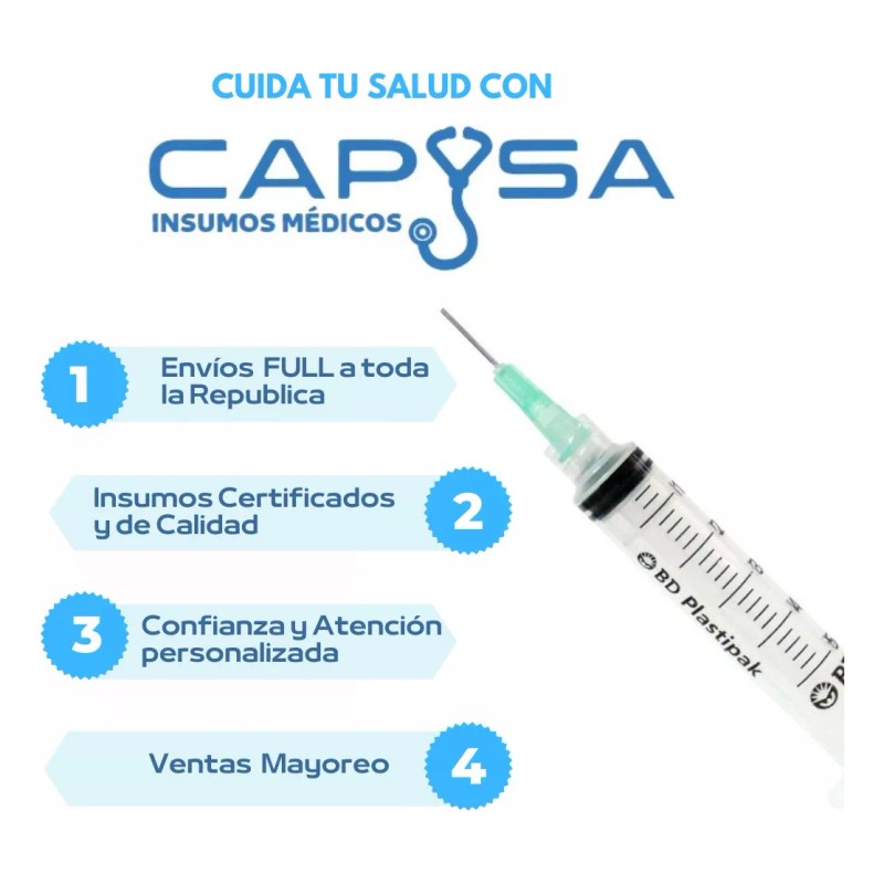 Todos nuestros productos cuentan con certificación de COFEPRIS y con su sello de esterilización y empaque cerrado.