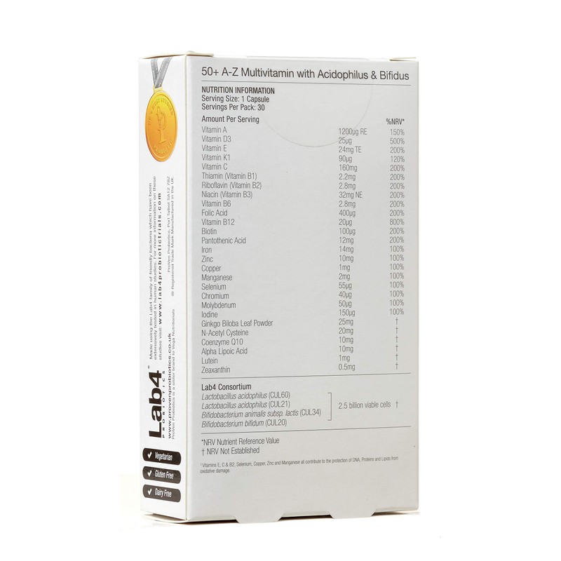 Proven Probiotics 50+ A-Z Multivitamins and Bifidus Capsules - Pack of 30s