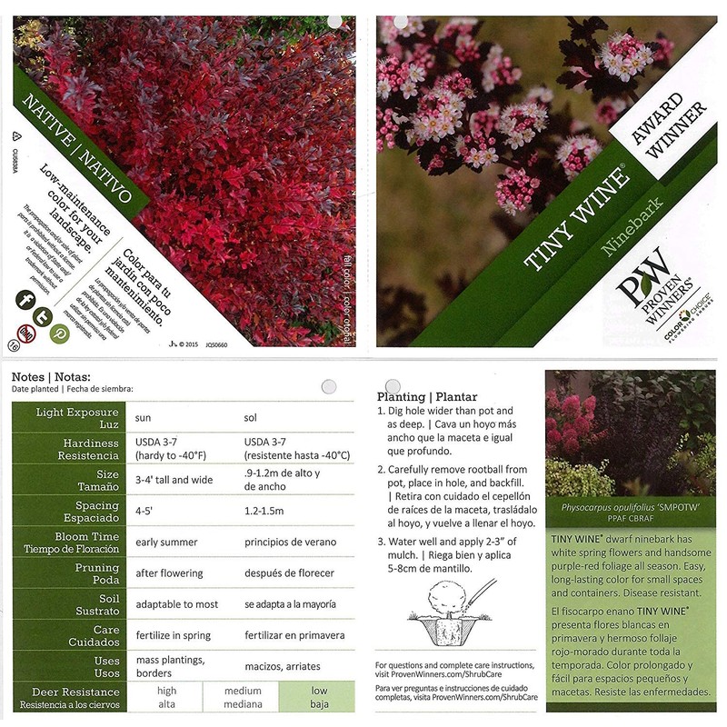 Proven Winners - Physocarpus op. Tiny Wine (Ninebark) Shrub, dark foliage/ dwarf , #3 - Size Container